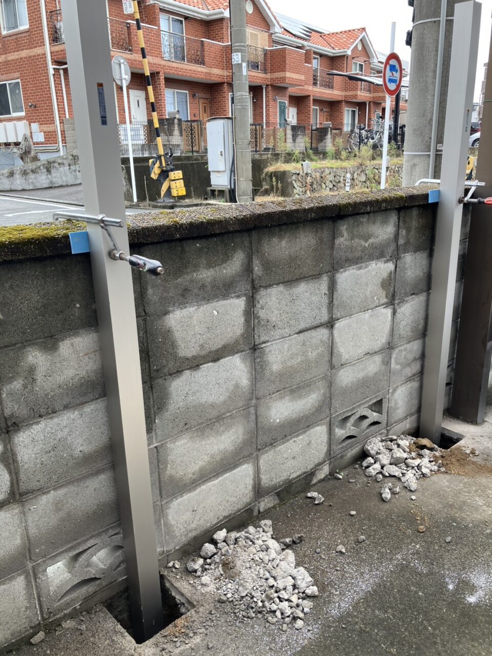 今回の現場では、既存のブロック塀の上にアルミフェンスを設置しました。
