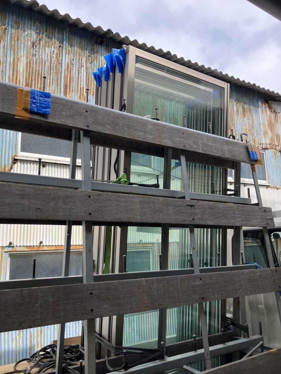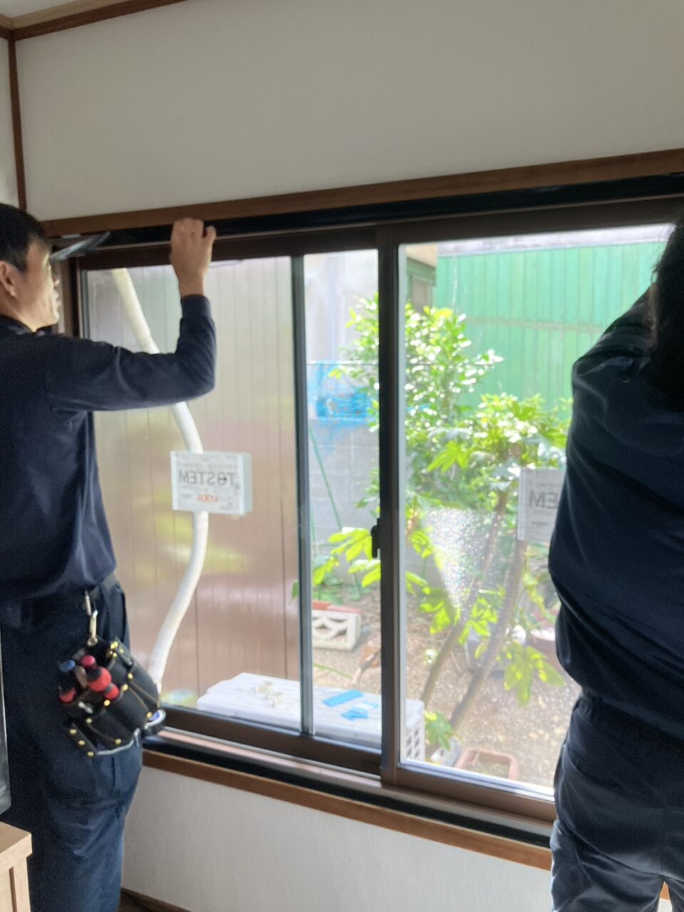 写真のように、既存窓の内側に新しいサッシを取り付けていきます。